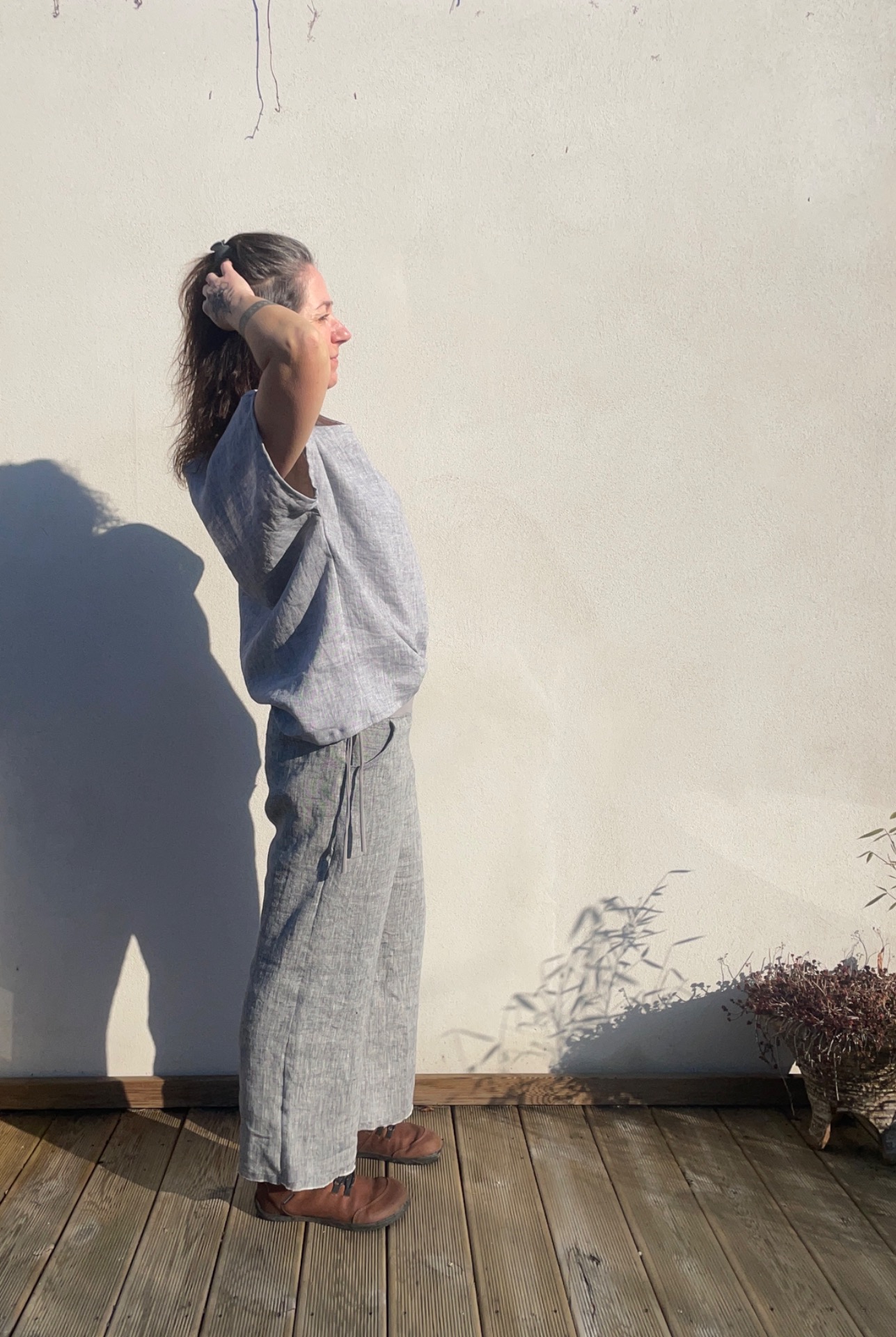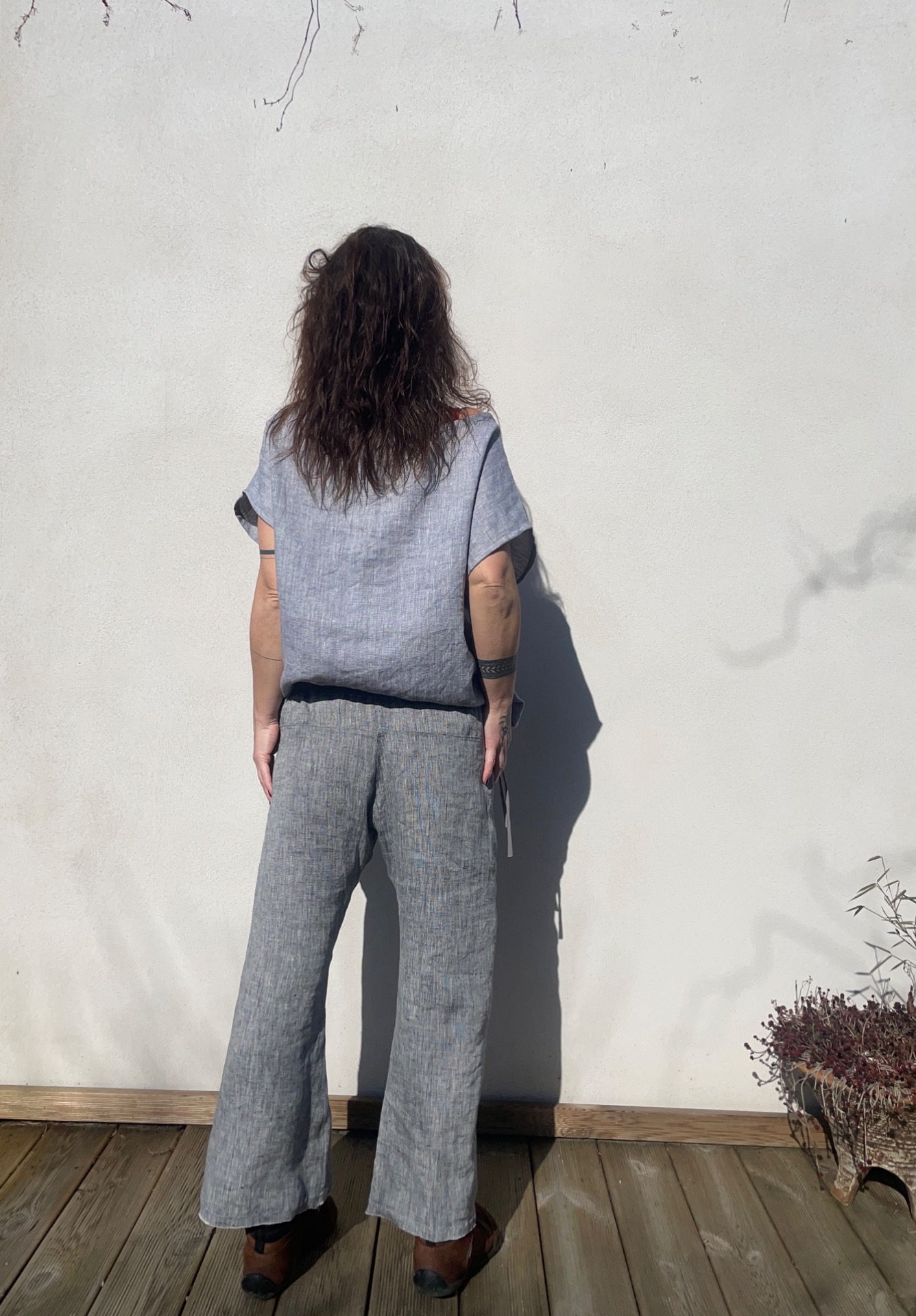 Lněné kalhoty široké