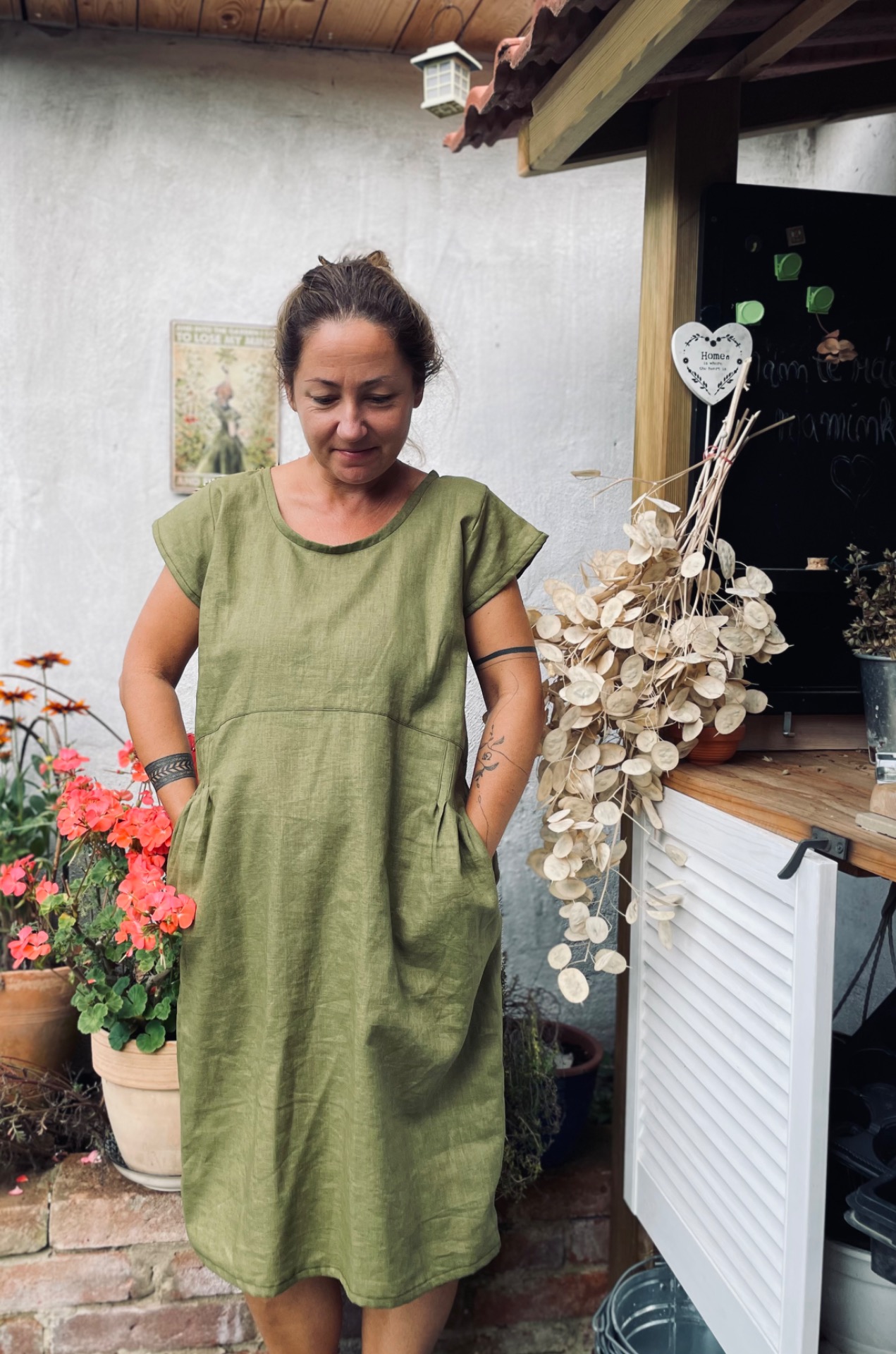 lněné šaty na zakázku vytvořím s rozepínacím horním předním dílem