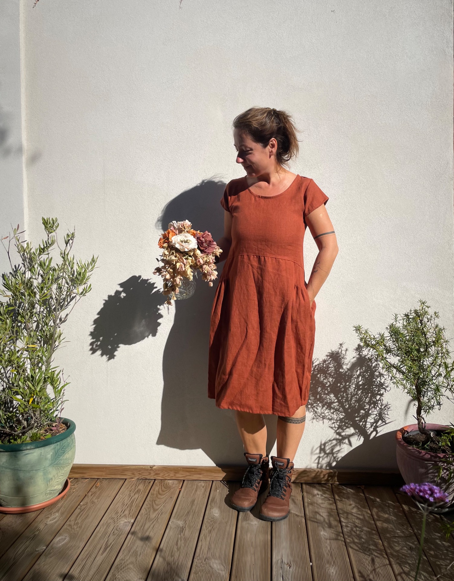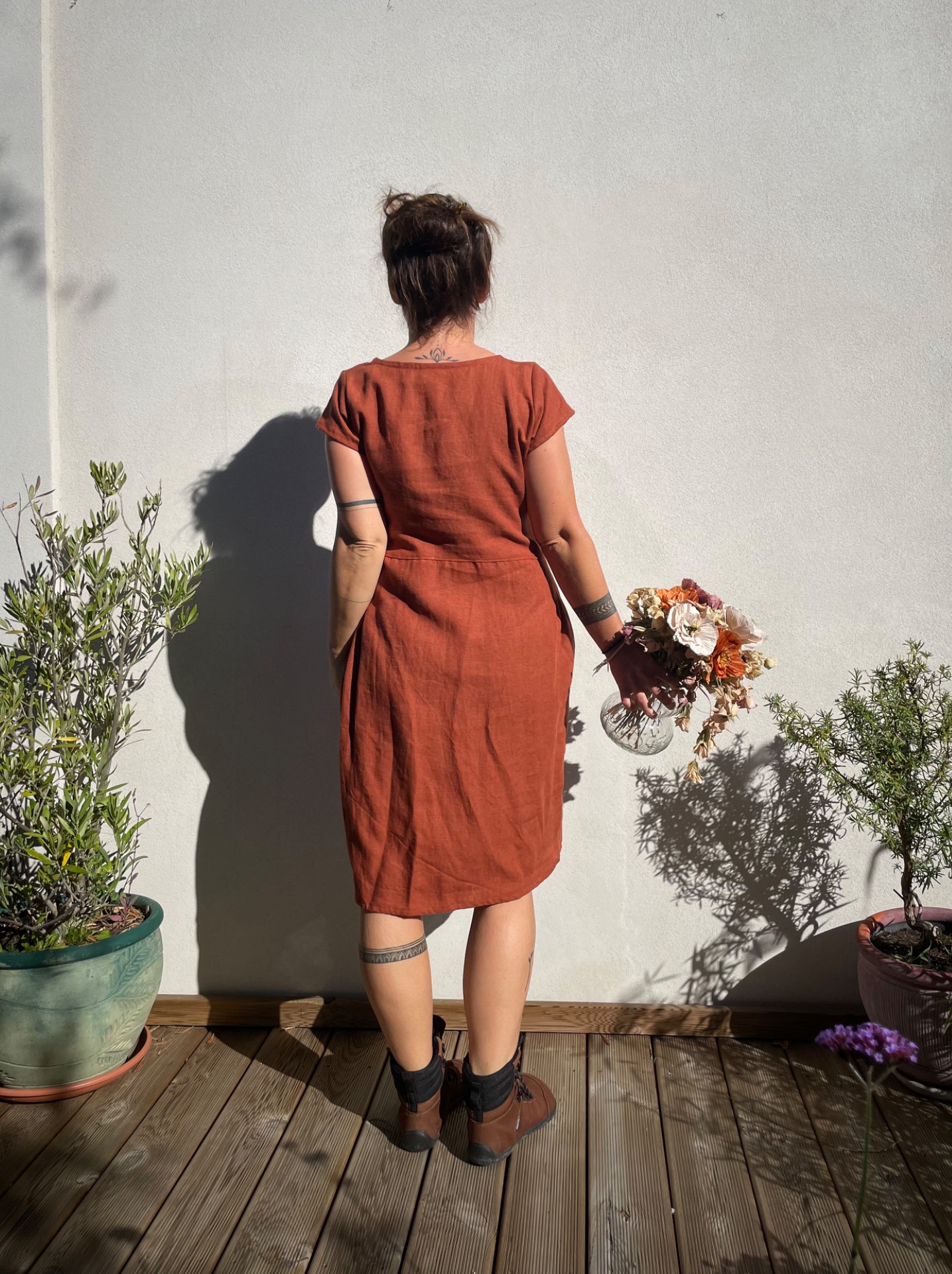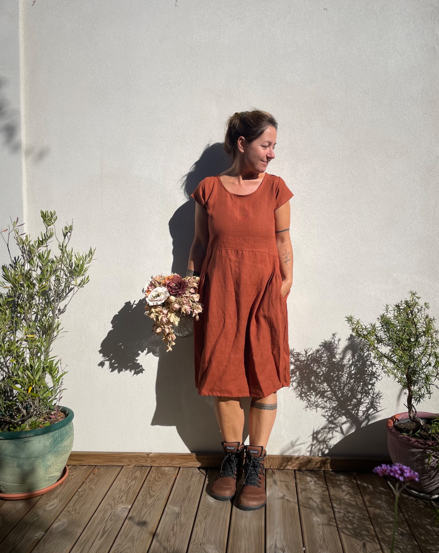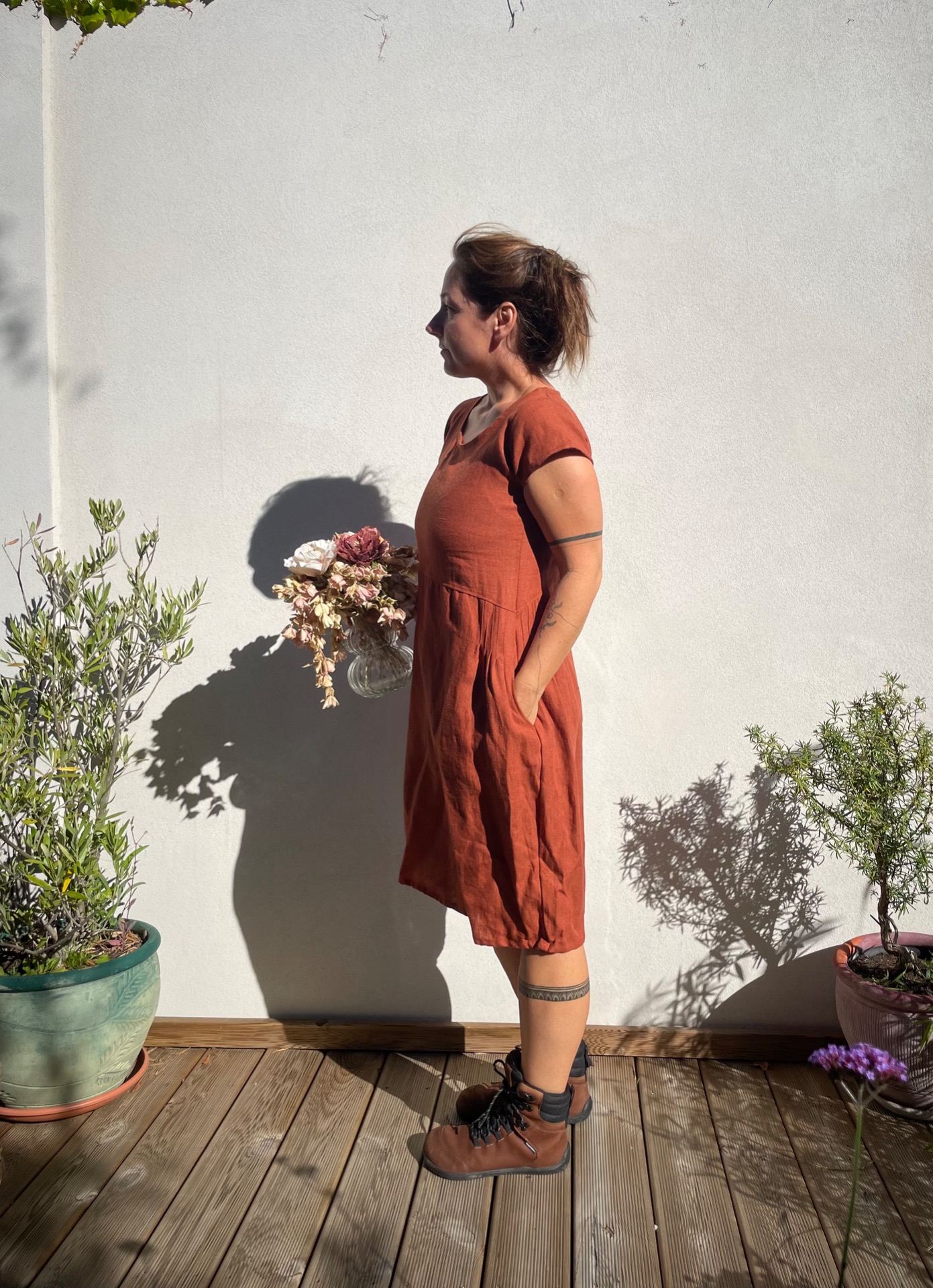 Materiál 100%len prvotřídní kvality vyšší gramáže 230g barvy terakoty,cihlová / skořicová