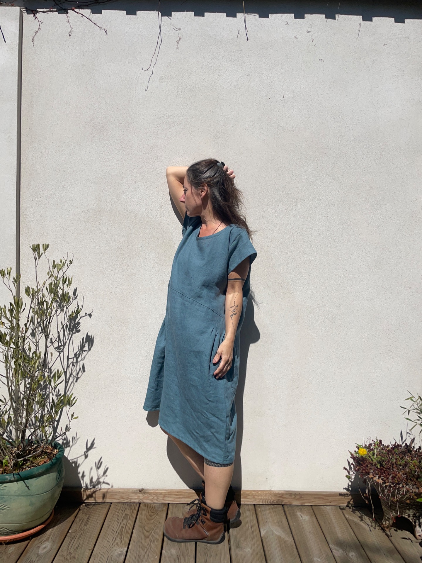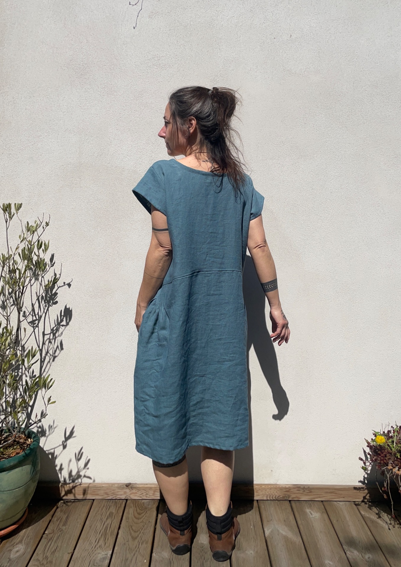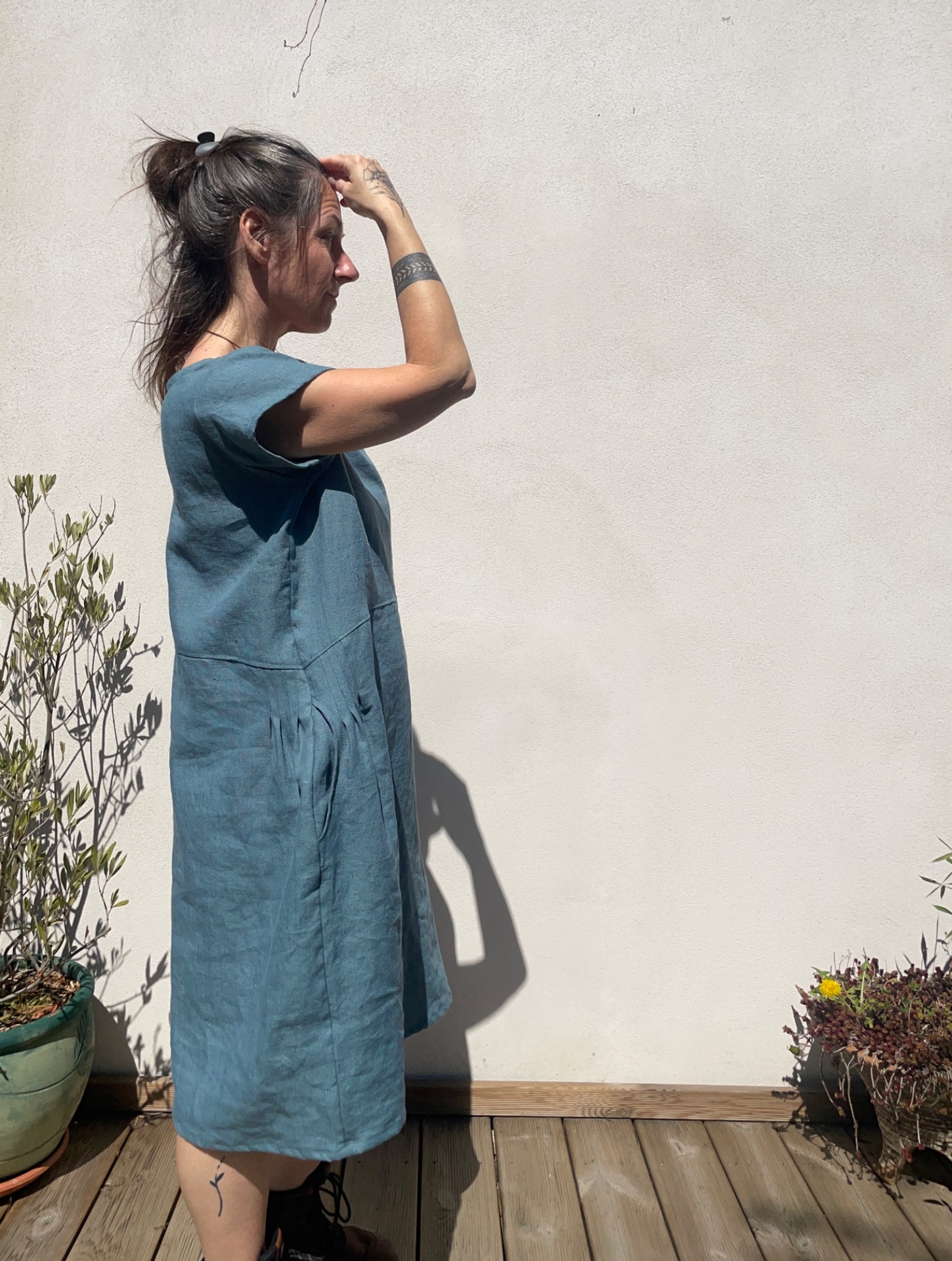 praktický univerzální střih se spousty detaily...na bocích jsou funkční kapsy, v přestřihu je několik prošitých sámků...výstřih akorát a vzdadu plná záda
