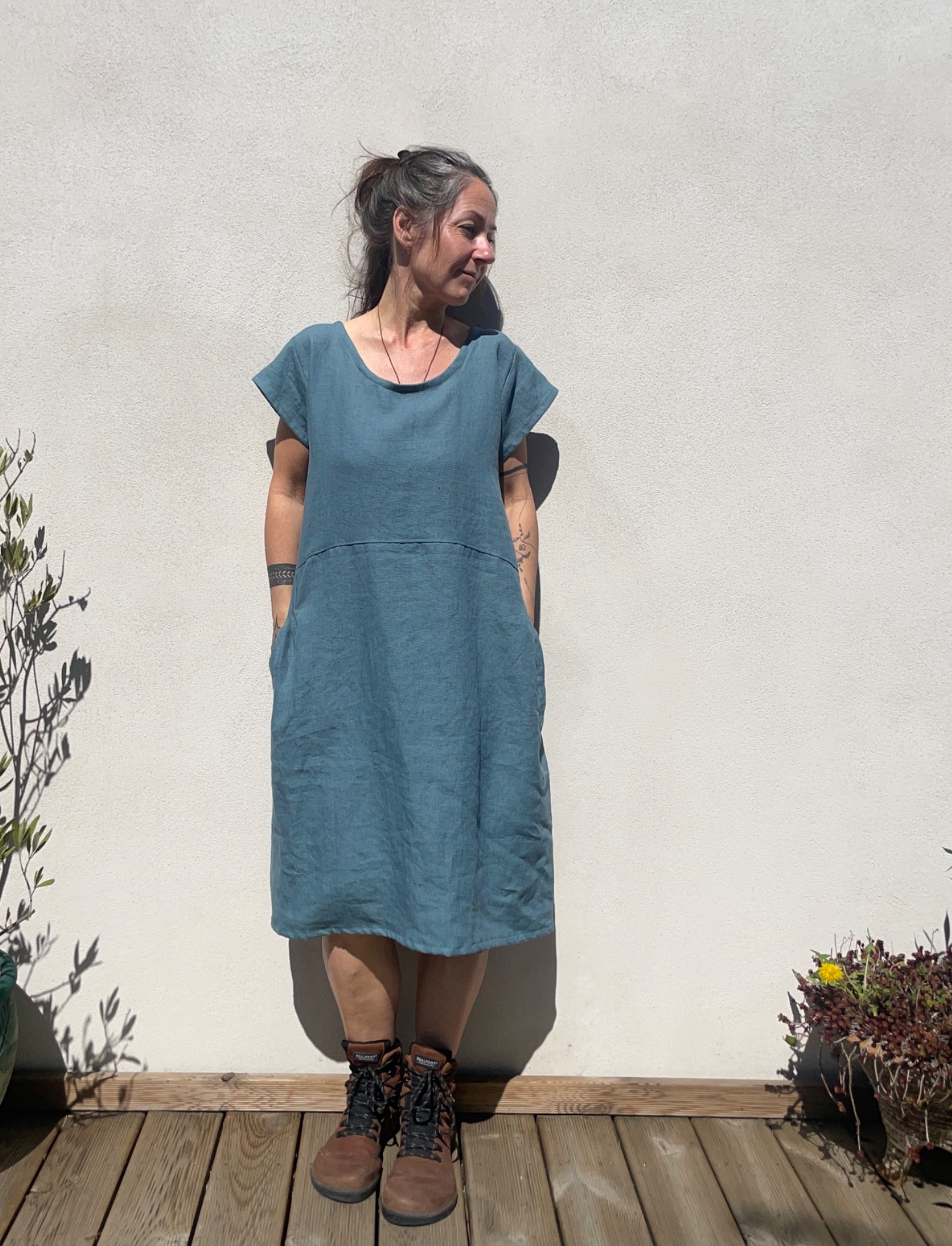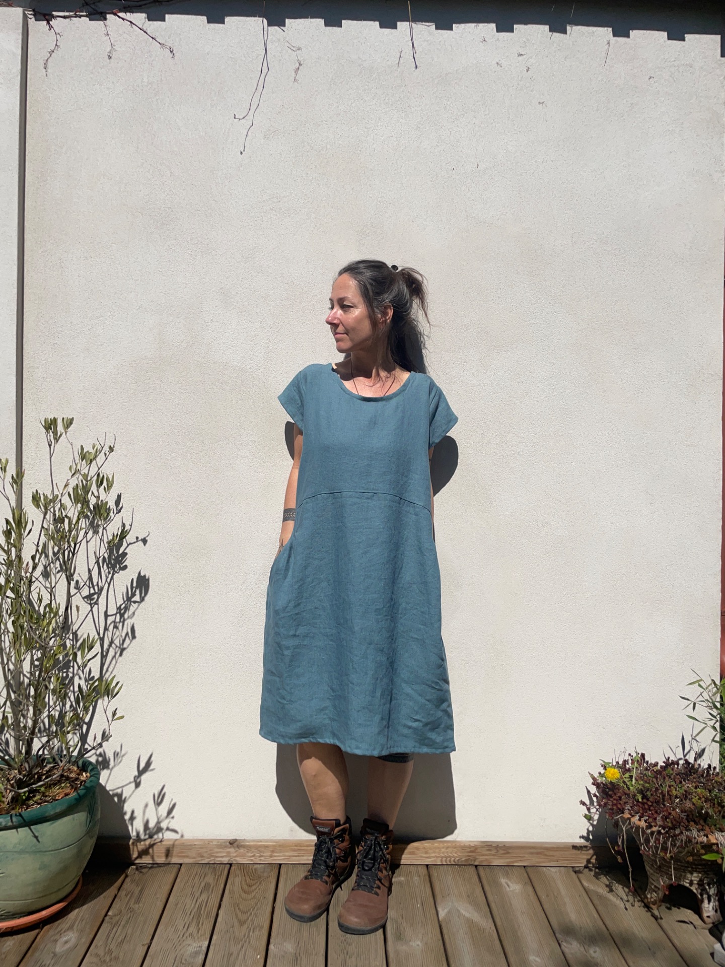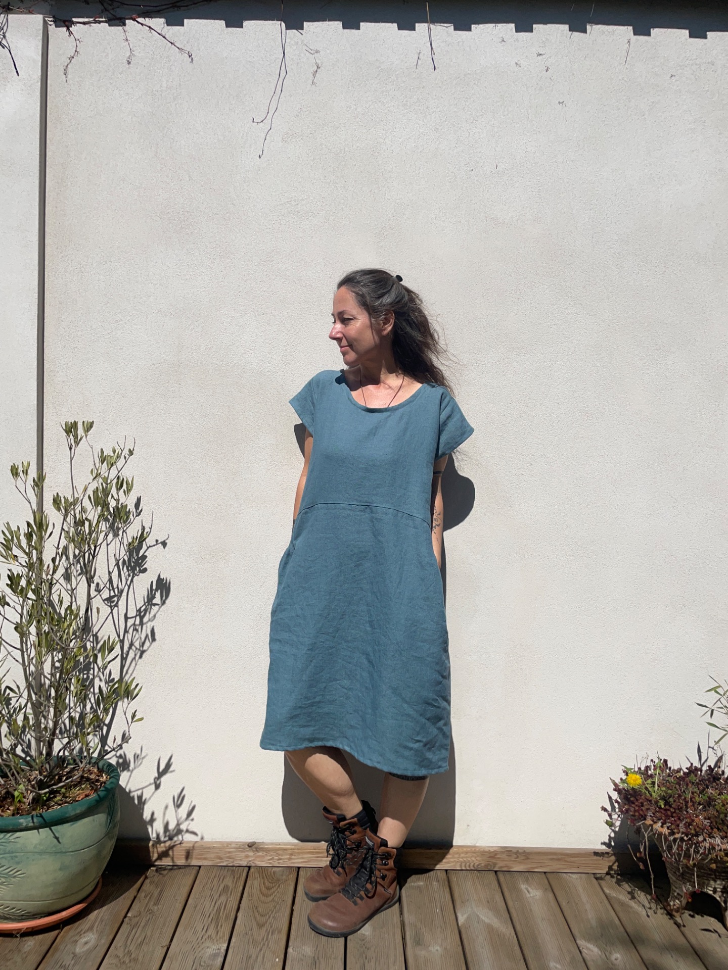 praktický univerzální střih se spousty detaily...na bocích jsou funkční kapsy, v přestřihu je několik prošitých sámků...výstřih akorát a vzdadu plná záda