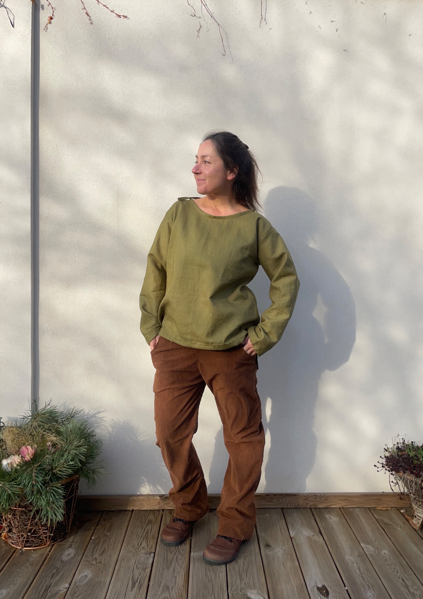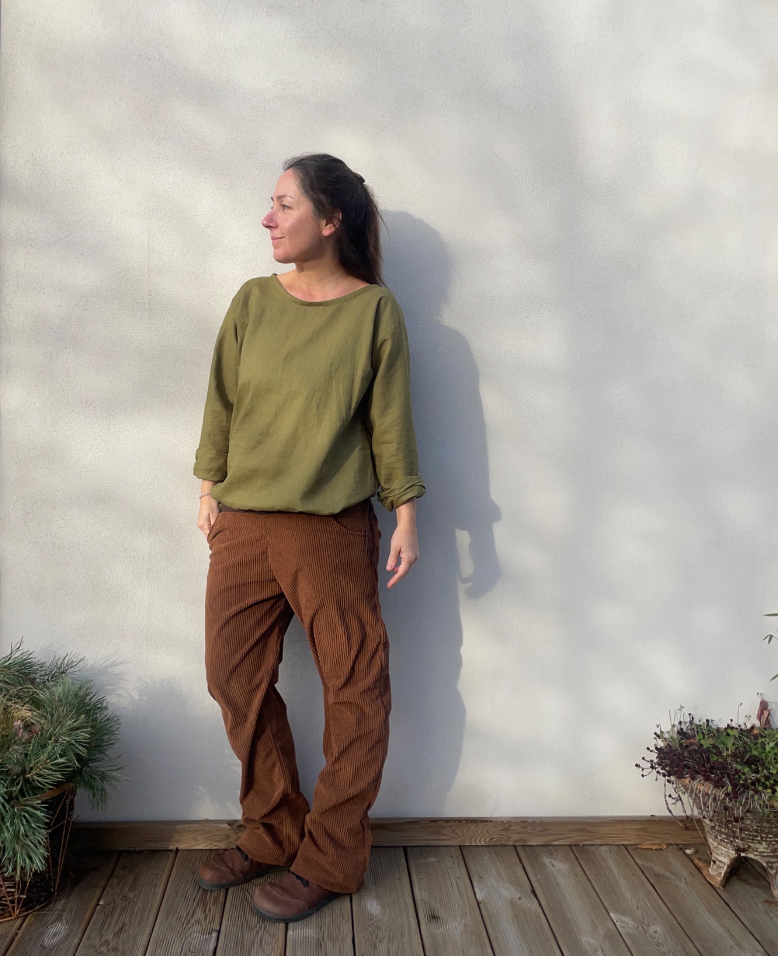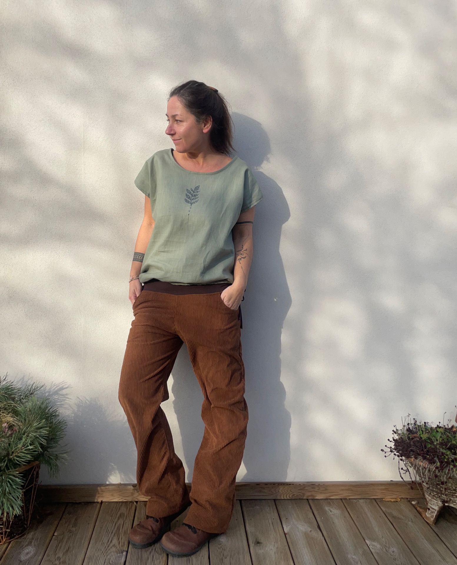 Materiál...manšestr, 280g,velmi pohodlný, splývavý, měkký ..s úpletem v pase s pruženkou ,barva hnědá oříšková