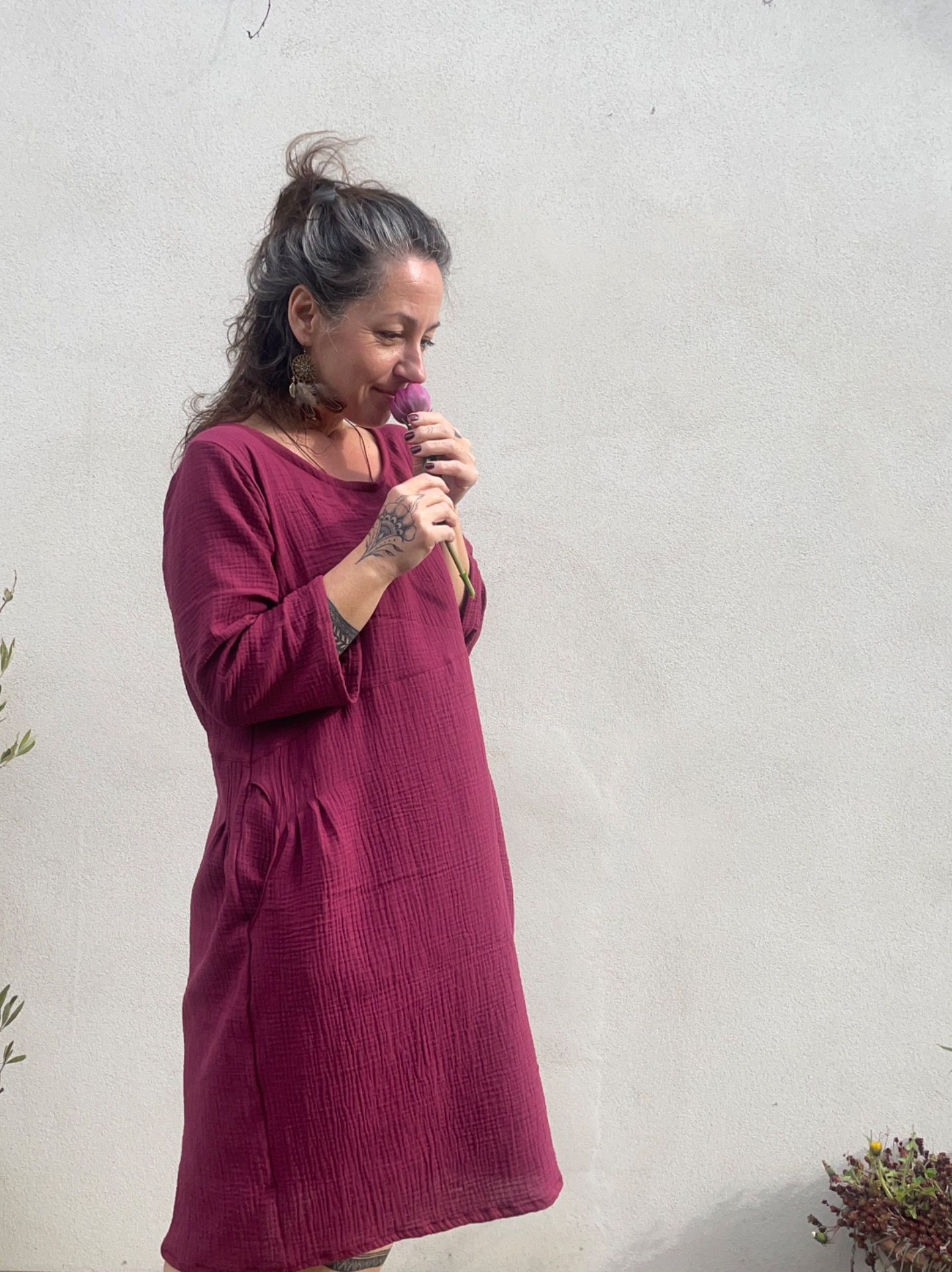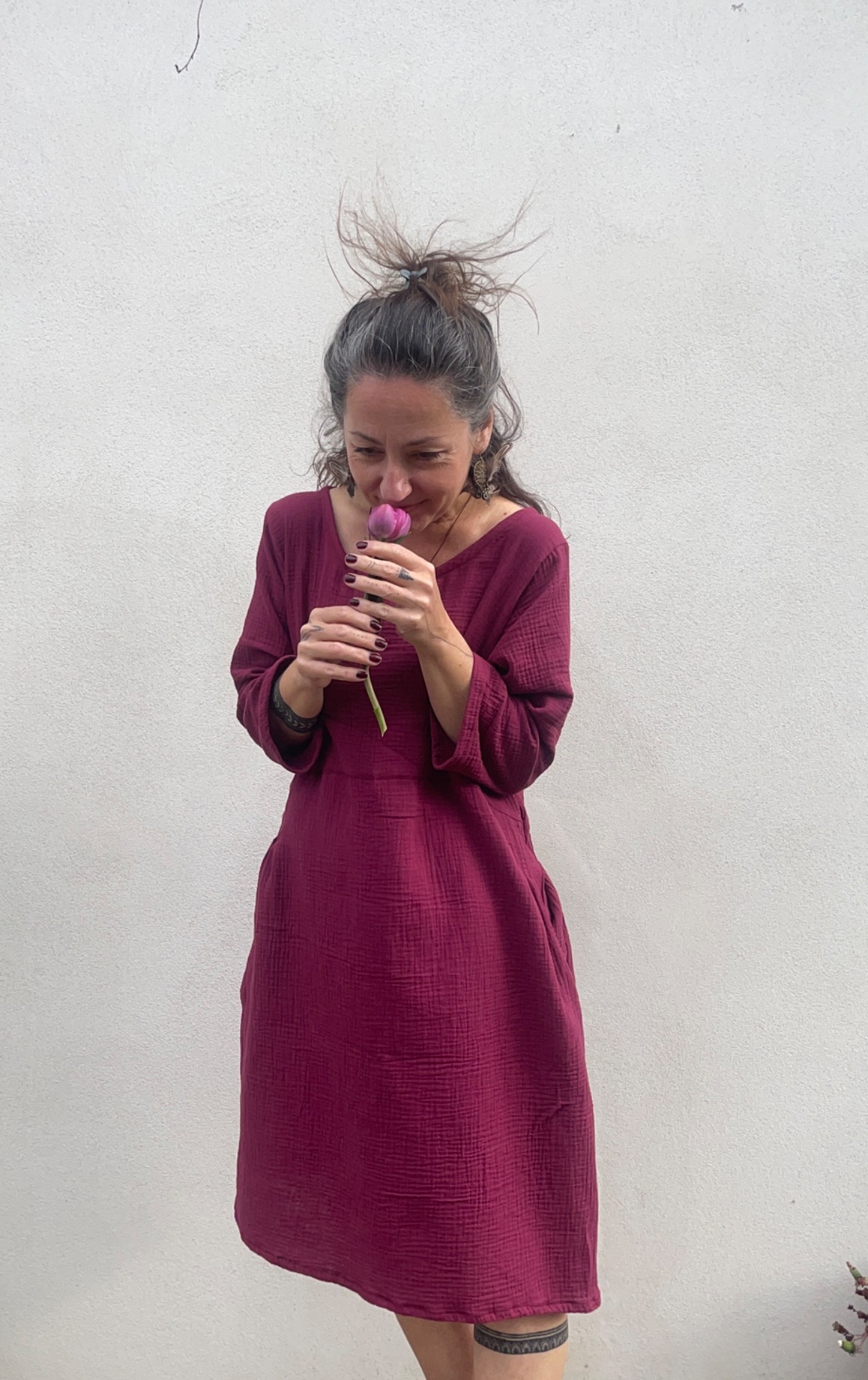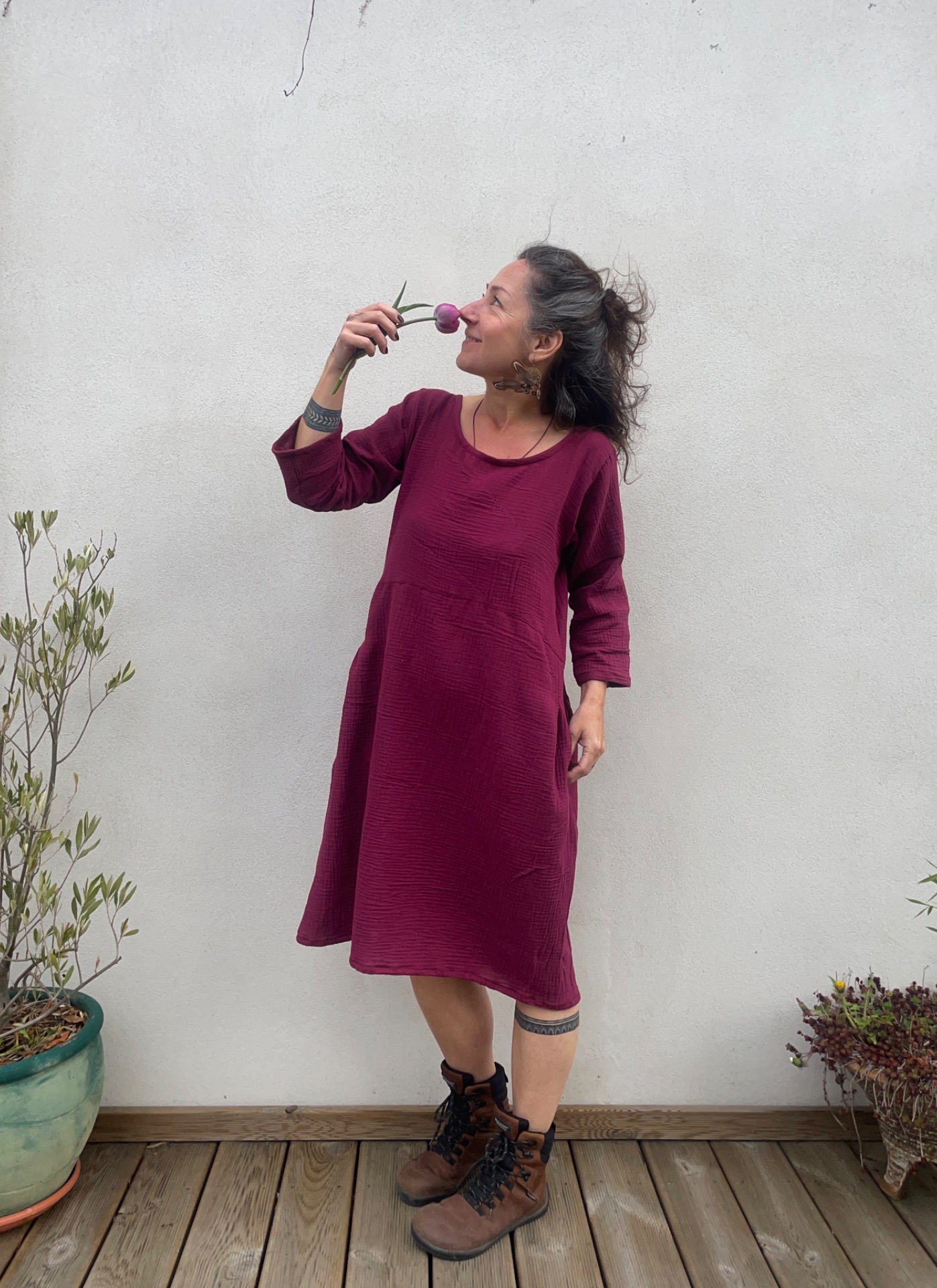 …šaty jsou velmi pohodlné, příjemné na nošení a díky mušelínu i s jednoduchou údržbou…nežehlí se