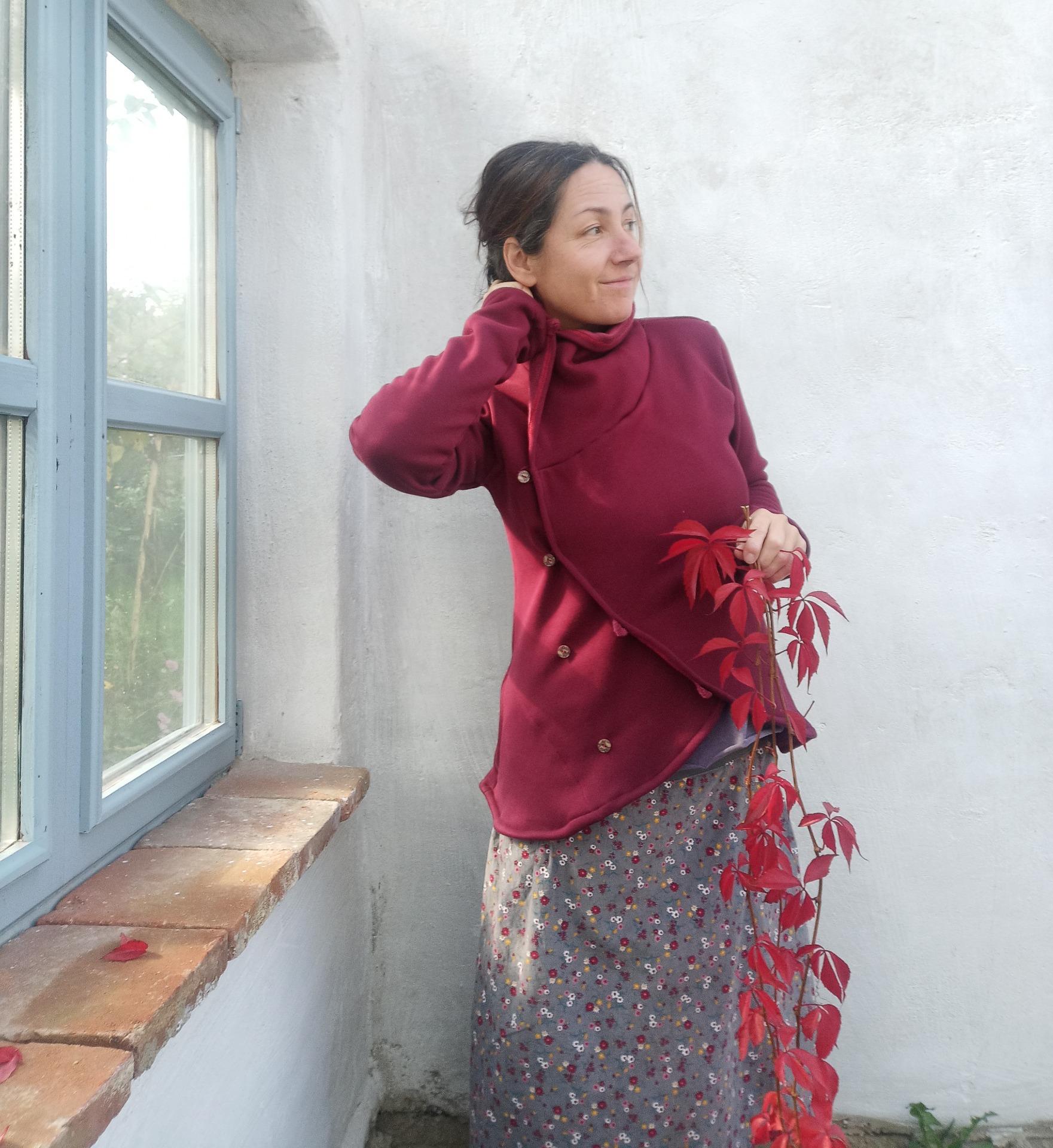 Utíkáček je delší a více zahalující než znáte u mého klasického letního...i tak je variabilní, má hřejivý límec a nosí se jen tak přes ruce a záda volně oblečený, nebo zapínání na malované knoflíky,v bocích hřejivé kapsy,